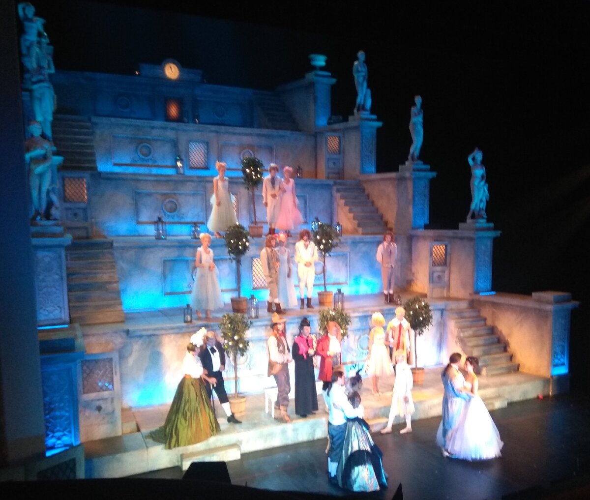 Вчера с любимой матушкой были в Театре им. Пушкина на спектакле «Женитьба Фигаро». Скажу честно и сразу: шли смотреть на Сергея Лазарева, который играет в спектакле главную роль. Но для начала в своем отзыве хочу написать несколько слов о самом театре. Очень душно, потрескавшиеся стены, откровенно старый интерьер (не старинный, а именно старый) – всё это производит угнетающее впечатление и отбивает охоту посещать данный театр, потому как духота есть условие чрезвычайно трудно переносимое, а уж моей больной неврастенической головой – тем более. Но всё же театр довольно атмосферный в своей классичности и интеллигентности. Теперь о спектакле. Сережа, конечно, молодец. Великолепная дикция, речь, отточенные элегантные движения, органичность в роли, прекрасные актерские способности – ожидания оправдались на все сто процентов. Отдельно хочется отметить актерскую скромность Сергея, заключавшуюся в полном отсутствии самолюбования на сцене, что так свойственно сегодняшним знаменитостям шоу-б