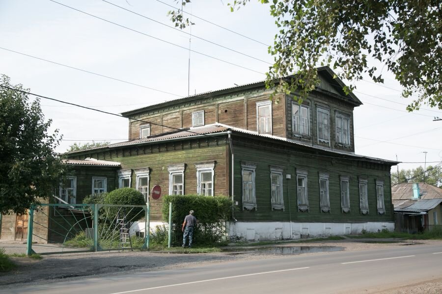 Совсем рядом – еще одно очень приметное здание. Дом купца, мецената Ивана Гусева, который состоит как бы из двух частей. Вторая – в три окна, мезонин. Сложно поверить, что ему уже более 150 лет. В начале XX века здесь жил археолог Иван Савенков – именно он открыл первые стоянки времен палеолита на Афонтовой горе в Красноярске. Предполагают, что у него останавливался Василий Суриков, когда приезжал в Минусинск.