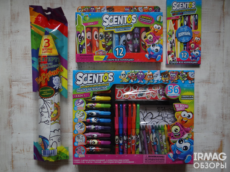 В этом обзоре разбираем коробку карандашей, маркеры Scentos и ту самую гигантскую скатерть-раскраску.