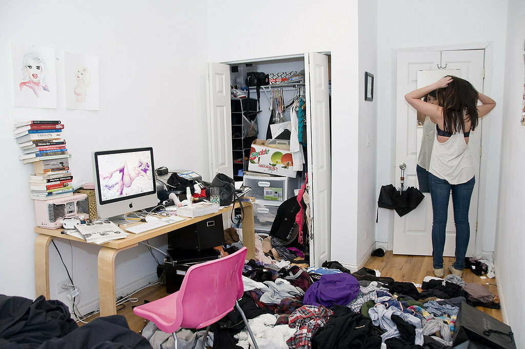 Грязь,огрызки, фантики (при наличии семейного правила - есть только на кухне), вещи....дорогие, дешевые.....все в кучу, всё одинаково пофигистически валяется везде где упало. Постель бывает прибранной только если я не выдерживаю.