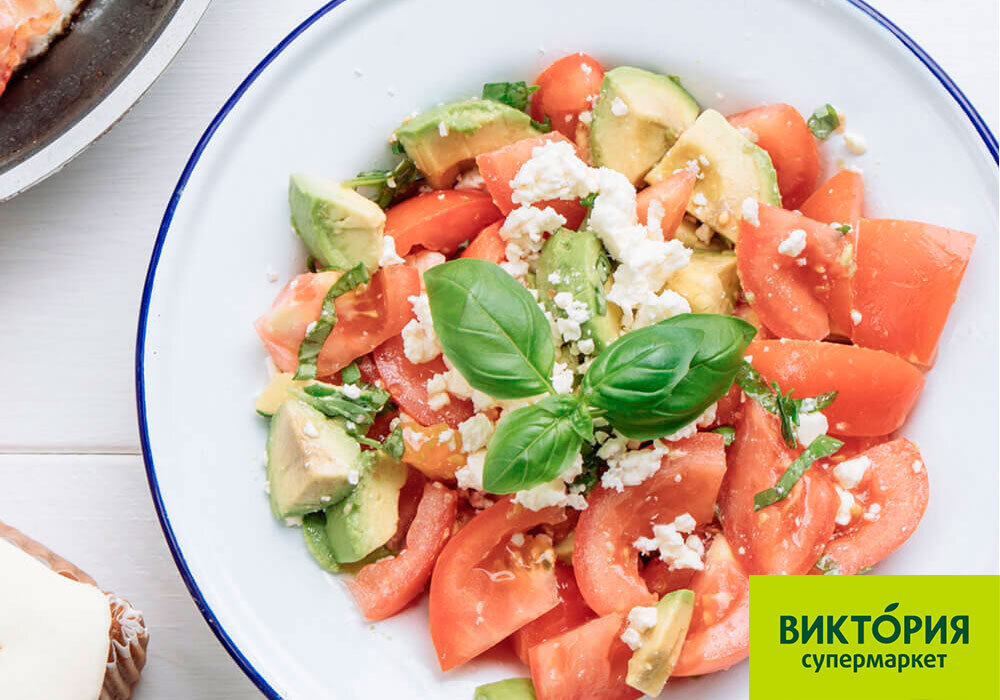 Шаг 3 В миске смешать томаты, авокадо, базилик. Залить овощи заправкой и перемешать. Украсить салат брынзой перед подачей на стол. Оригинал рецепта размещен здесь: https://clck.ru/J3xqB