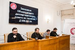10 сентября 2019 года на заседании Объединенного диссертационного совета по теологии Д 999.213.04 состоялась защита диссертаций на соискание ученой степени кандидата и доктора наук по специальности 26.00.01 – Теология. Заседание проходило в актовом зале Общецерковной аспирантуры и докторантуры имени святых равноапостольных Кирилла и Мефодия под председательством ректора ОЦАД митрополита Волоколамского Илариона. В мероприятии принял участие доктор философских наук, ректор Поволжского православного института протоиерей Димитрий Лескин. В повестке дня были приняты к рассмотрению две диссертации на соискание степени кандидата теологии двух соискателей из Санкт- Петербурга: иерея Алексия Волчкова и игумена Филарета (Пряшникова). Во второй части заседания была принята к защите диссертация игумена Серапиона (Митько) на соискание ученой степени доктора теологии.
