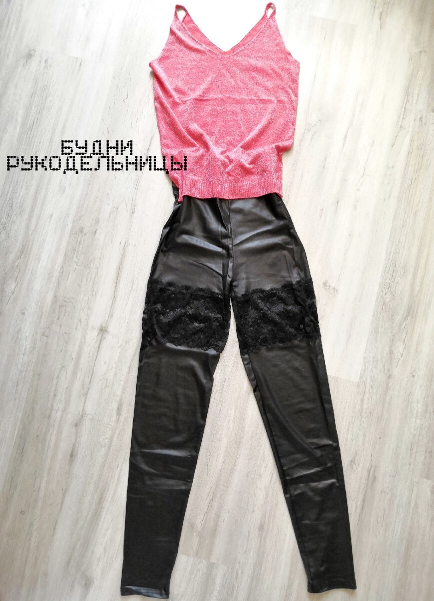 Кто из нас не совершал ошибки не тешил свое любопытство? Китай. Суровый и очень дешевый. Изначально не было задумки приобрести произведение искусства, поэтому я знала, на что шла. =) И все, кто выше 165 см, я думаю, меня поймет. =) Кожаные леггинсы, дорохо-бохато, девчонки, налетай! =) Леггинсы покупались давно, но оставались почти нетронутыми, потому что я вышла ростом, а они – нет. Выход был один – заправлять в высокие сапоги, а обувь снимать исключительно дома, где все свои. Это не самый подходящий вариант, поэтому леггинсы легли на полку. А сегодня – именно тот день, когда пора к ним вернуться, и, как я люблю, подрасхламиться. Предлагаю вам самый логичный способ удлинить брюки. Я долго думала, куда делать вставку: внизу или где-то в середине. Решиться мне помогло кружево, потому что кружево такого плана не смотрелось бы снизу совершенно. Итак, не боясь испортить вещь, напомню, мой эксперимент не над дизайнерским творением, поэтому взяла ножницы и одним взмахом руки расчленила своег