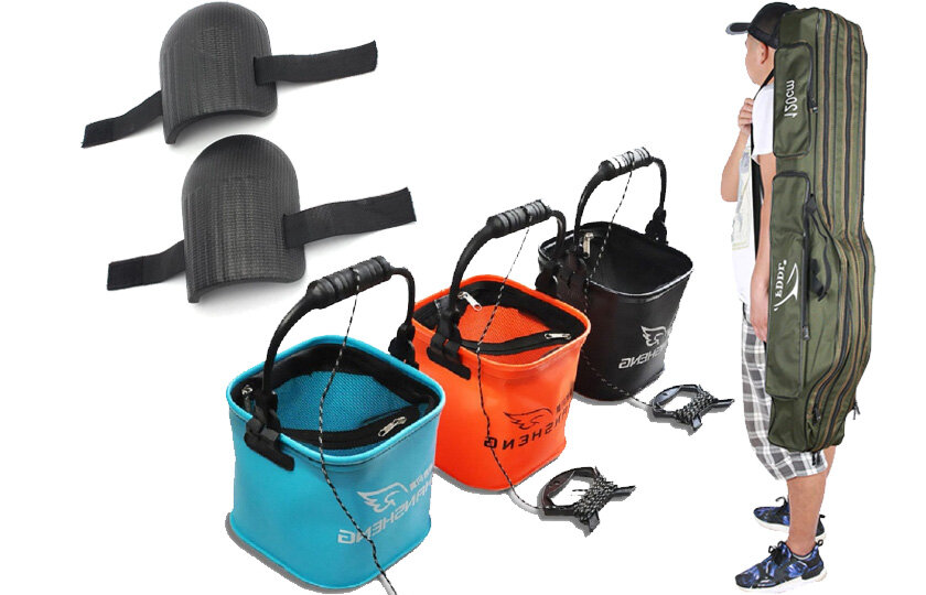 Подборка недорогих товаров для рыболовов. Сумка для удочек, наколенники и ведро складное