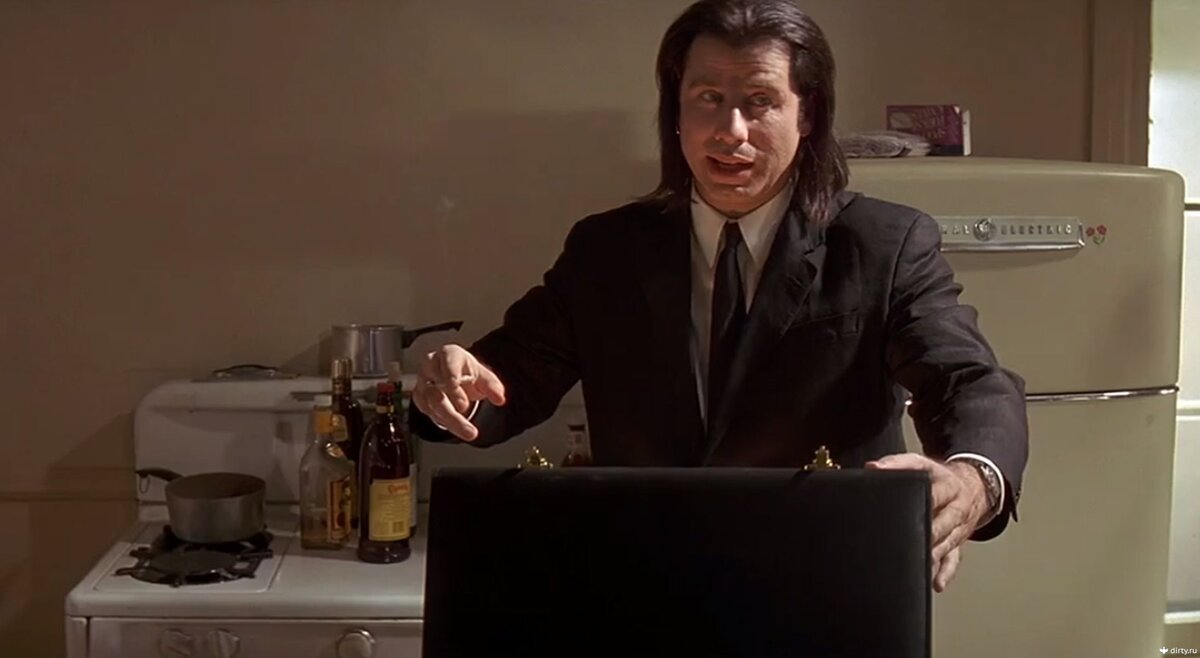 Это абсолютно неважно, и я не думаю, что там вообще что-то должно было быть. Это хорошая иллюстрация хичкоковского понятия «макгаффина» — когда вокруг обладания каким-то предметом может строиться и работать сюжет. Там даже кейс не играет особо важную роль, но все же гораздо более важную, чем его содержимое. Если бы оно имело хоть какое-то значение — нам бы его показали, но нам содержимое не показывают. Я слышал интерпретацию, что в кейсе якобы находится душа Марселласа Уоллеса. Но это все фанатские додумки , и никаких доказательств в пользу этой версии нет. Если говорить по-честному о том, что там могло на самом деле лежать, то в пародии «Тривиальное чтиво», когда герои находят кейс и открывают его, на них проливается такой яркий желтый свет. Кто-то из героев спрашивает, что же там такое, и ему отвечают, что там лежит куча фонариков и светящихся палочек, соединенных проводами. Вот примерно это там и было — куча светящихся палочек. Точно не знает никто. Изначально - по словам Тарант