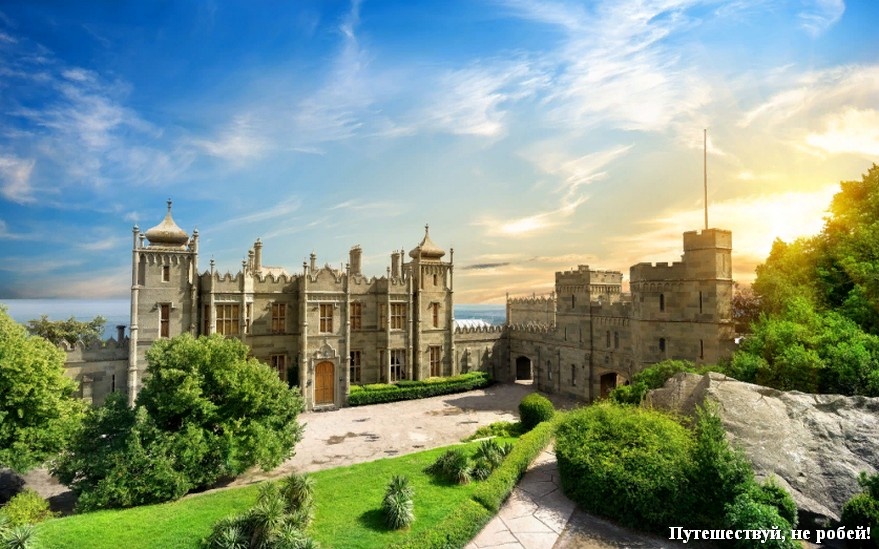 Одно из известнейших мест Крыма — Воронцовский дворец. Был построен в первой половине девятнадцатого века. Задумывался он как летняя резиденция наместника Новороссийского края генерал-губернатора графа Воронцова. Строительство дворца велось по-новому отходя от классических принципов строительства подобных сооружений того времени. Все постройки привязывались к ландшафтным особенностям местности. Благодаря этому дворец органично вошёл в местный пейзаж и никак не нарушил красоты окружающей его природы. В строительстве использовался английский стиль, причём использовались приёмы строительства разных эпох благодаря чему дворец получил свой индивидуальный ни на что не похожий вид и по праву считался жемчужиной того времени. Английский стиль — Воронцовский дворец!
