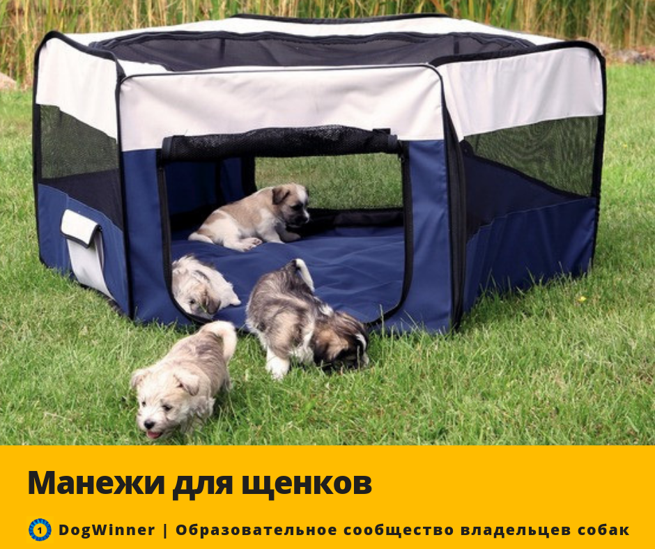 Магазины для животных предлагают огромный выбор манежей (вольеров) для щенков. Однако далеко не все товары способны удовлетворить требования заводчиков. Давайте разберемся, когда проще купить готовое изделие, а когда лучше изготовить ограждение на заказ. Требования к манежу: Что представлено на рынке? 1. Тентовый вариант – манеж из ткани, натянутый на каркас. Выглядят очень эффектно, ткань синтетическая, водонепроницаемая, легко чистится. Такие ограждения подойдут для небольших и средних пород. Для крупных щенков прочности маловато. 2. Пластик. Практичен в уходе, интересный дизайн. Минус – небольшой размер, легкость конструкции. 3. Металлические вольеры. Неоспоримое достоинство – модульная конструкция: количество секций можно наращивать по мере роста щенков. Стандартная высота – от 55 до 95 см. Для надежности такой вольер можно прикрепить к полу и стене. Подходит для крупных пород. В большой вольер щенки «переезжают» после 3-4 недель, как только начинают активно двигаться. Для малышей