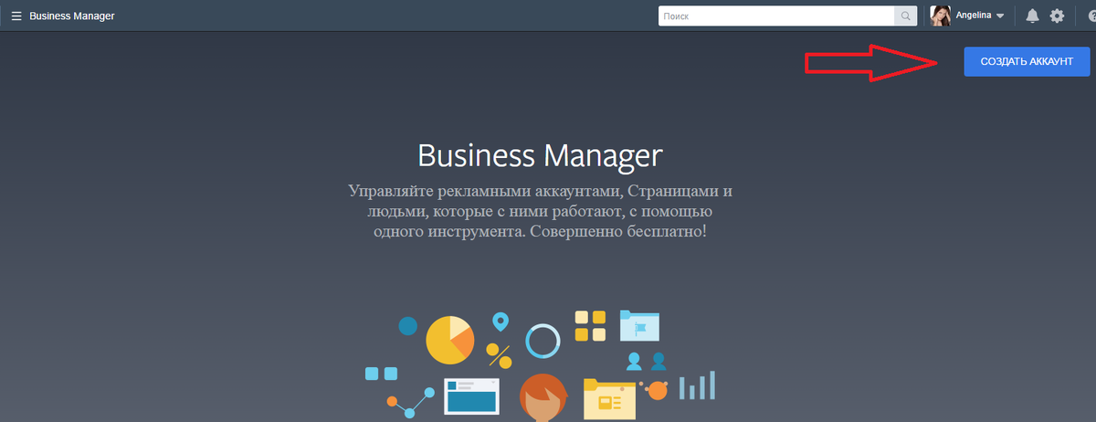 Сначала нам нужно зайти на страницу создания Бизнес-менеджера (БМ)