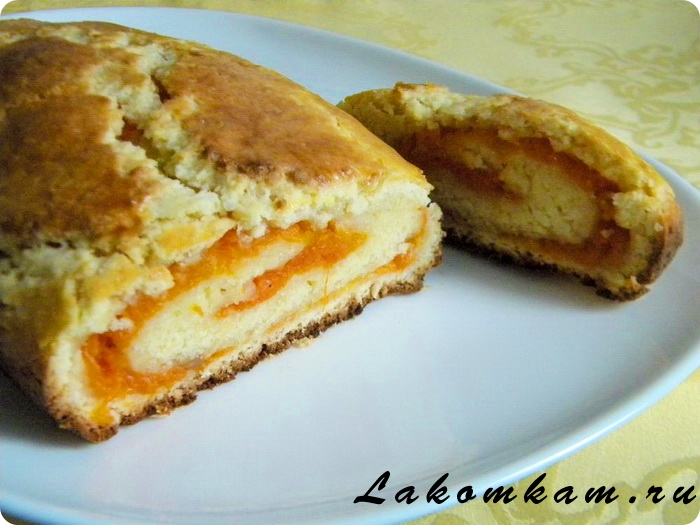 Ингредиенты: тыква – 200 грамм; яйцо – 1 штука для теста и 1 штука для покрытия рулета; мука пшеничная – 1 стакан; сливочное масло – 100 грамм; свежий творог (жирность 9%) – 100 грамм; сахар – 100 грамм; разрыхлитель для теста – 0,5 чайной ложки; изюм – 50 грамм.