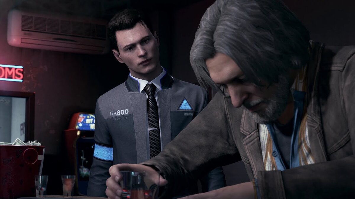 - Лейтенант Андерсон, моё имя Коннор. Андроид. Прислан из «Киберлайф». – представляюсь, как положено по протоколу. Я заходил в участок, но там никто не знал, где вы. Сказали, что вы могли пойти выпить. Повезло найти в пятом по счёту баре.
