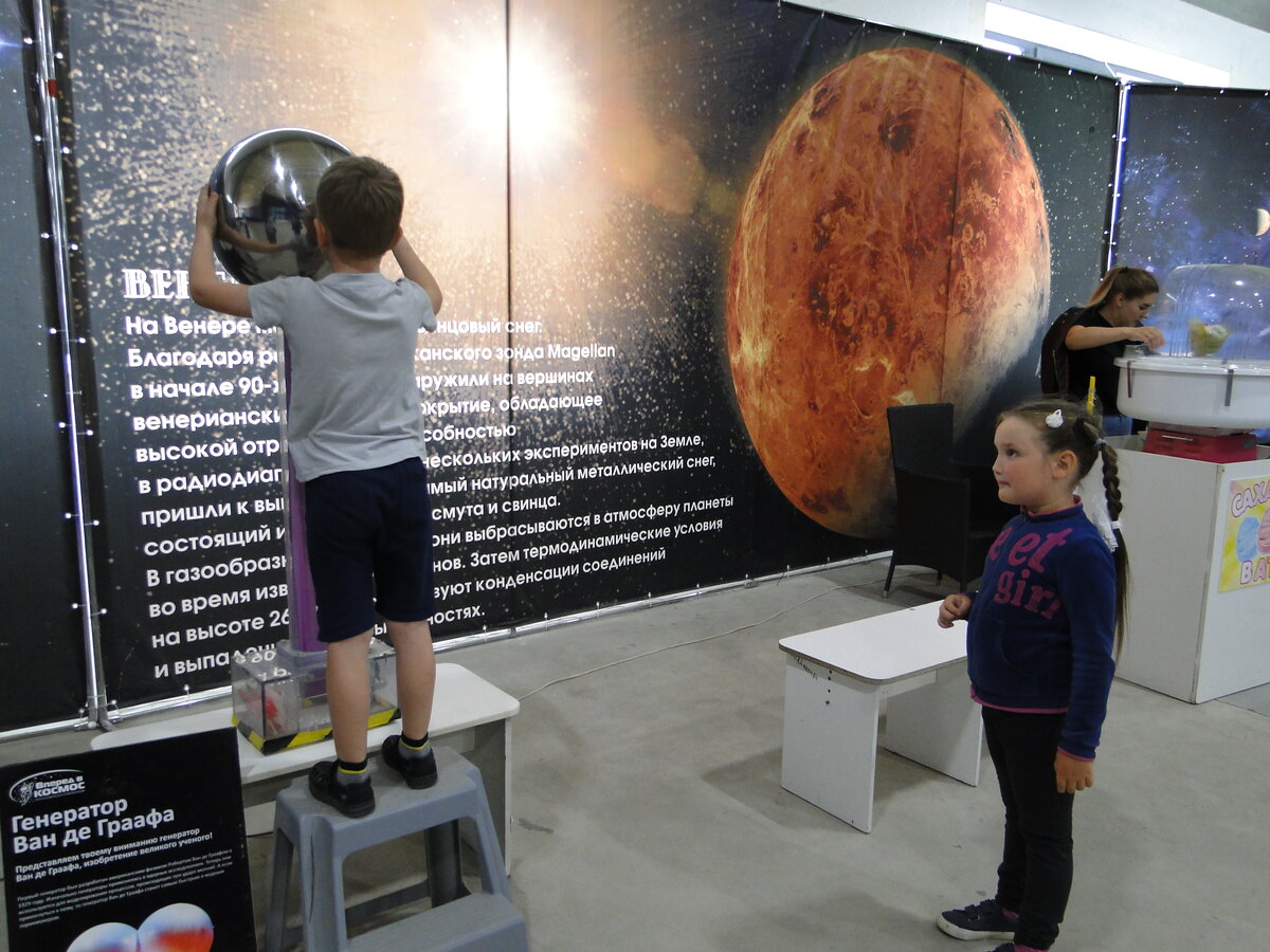 Весной прошлого года я уже писала о подобной. И в картинках показывала. Тогда Вика сходила на эту выставку трижды. Очень ей понравилось. Ждала, когда приедут снова. Новая выставка открылась в июле, но как-то то денег не было, то дела, то погода слишком хорошая, чтобы провести целый день в помещении. А на прошлой неделе свершилось. Мы дошли. Ещё и не одни дошли, а с компанией в виде моей подруги и её сына, который ровесник Вики. Пожалуй, рассказывать много не буду, а добавлю фотографий. Кроме роботов было много интересного: возможность узнать свой вес на разных планетах солнечной системы, покрутиться в гироскопе, поиграть в видеоигры в очках виртуальной реальности, пройти лазерный лабиринт, потанцевать под руководством умной программы, которая тебя видит и оценивает, полетать, посмотреть в иллюминатор космического корабля, услышать свой голос в космосе... Мне больше всего понравился тоннель. Входишь в него и идёшь по мостику в десяти сантиметрах от пола. Мостик стоит на месте. Но по к