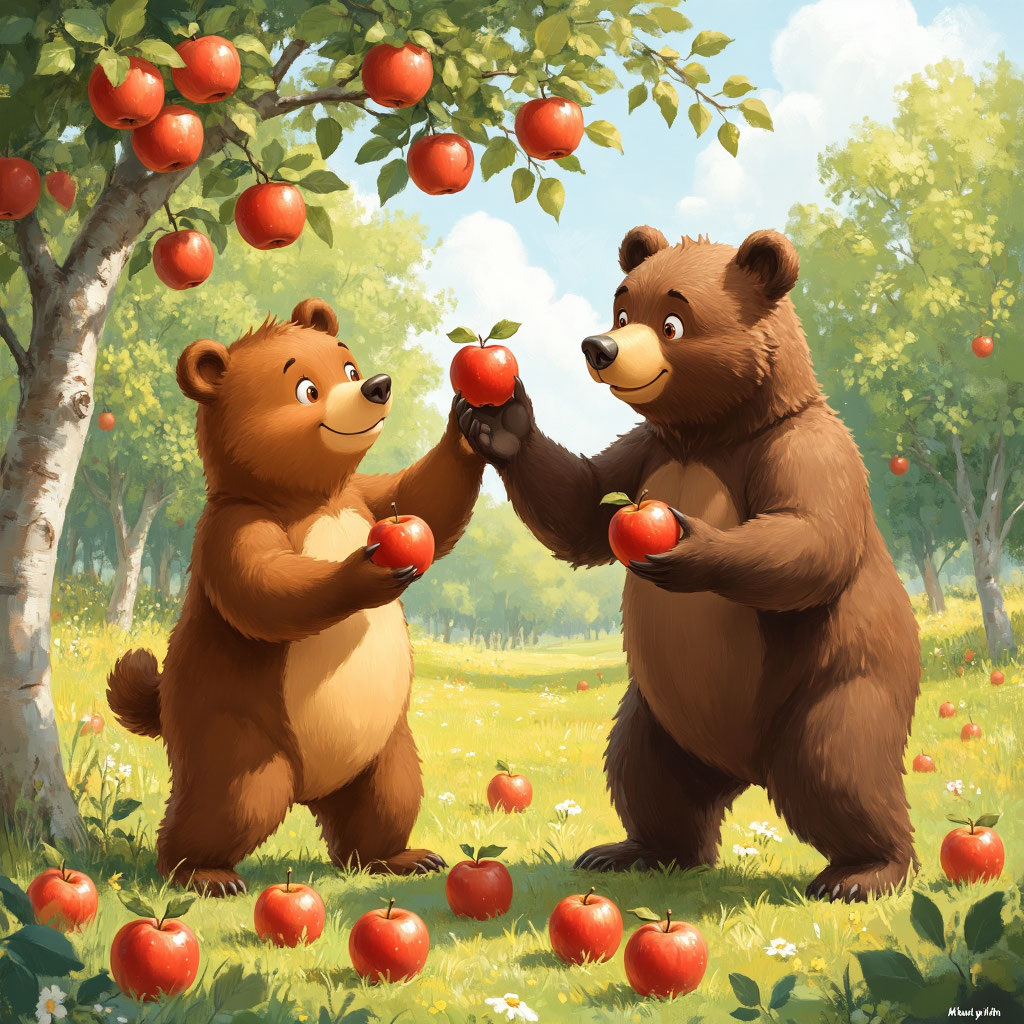 —" Пусть с чаем по пъет, а вось полекчает.И стало Мишутке стыдно,что он соседям яблоки пожадничал . Стех пор Мишутка стал совсем другим. И понял он, что доброта и щедрость всегда возвращаются.