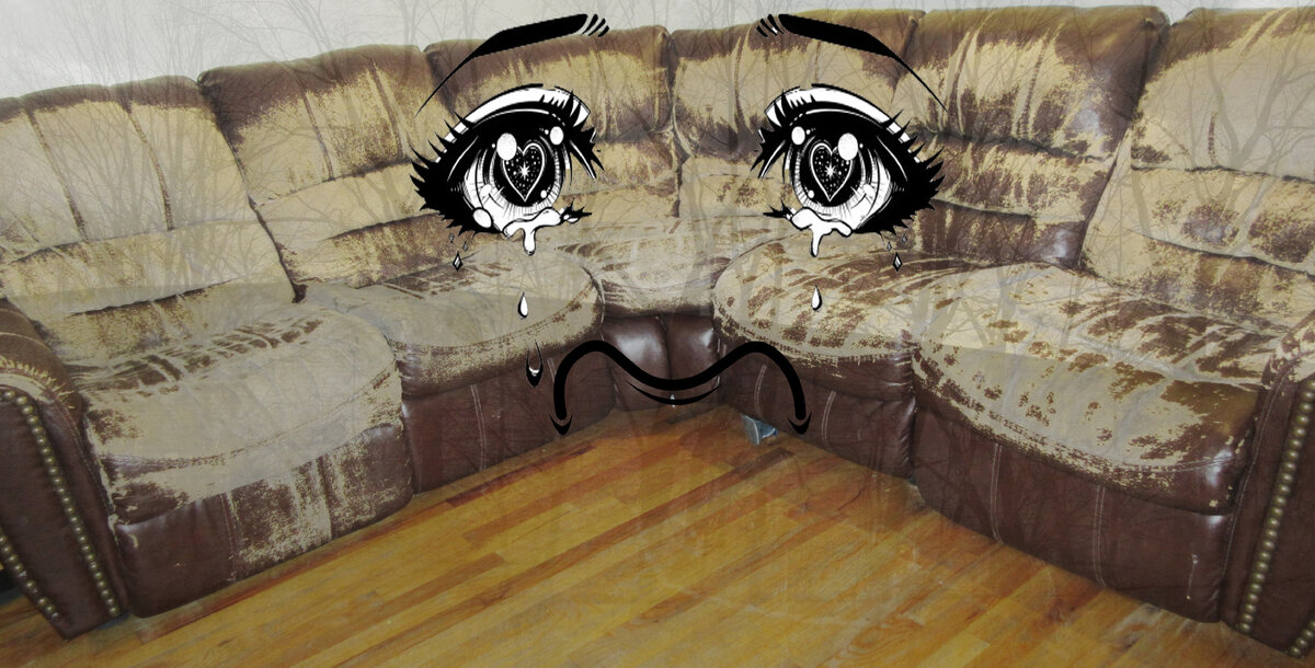 Вторая часть истории о “замечательной” экокожи затрагивает одного из наших постоянных клиентов (теперь уже). Девушка обратилась к нам в компанию с просьбой удалить с дивана запах мочи кота, который поделился ею несколько недель назад. После некоторых уточнений оказалось, что у нее был угловой диван из экокожи, который уже полгода назад весь облез. Котик недолго думая, сходил на место, где уже не осталось ошметков этого мерзкого материала и был таков. Хозяйка долго читала все форумы и сайты про псевдодействующие народные средства. Само собой, как и во многих случаях, она прислушалась к ним и начала заливать в этот бедный диван всё подряд: сначала лимонную кислоту, затем уксус, далее пошел в дело “Ваниш”, ну и под конец специальное средство для удаление запахов кошек из зоомагазина. В диване образовалась ядерная смесь, которая не давала спать не только полноправному пользователю данного дивана, но и всем остальным обитателям квартиры (в основном коту-озорнику).