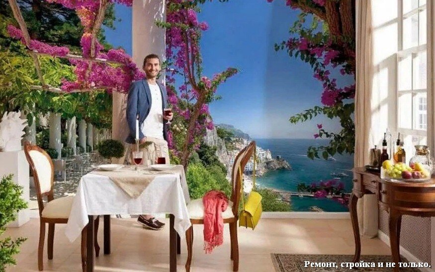 Одним из довольно распространенных, и изысканных вариантов оформления кухни по-прежнему являются фотообои. Фотообои позволят вам насладиться видом улиц Парижа, лесной опушки или побережья океана. Такие виды способствуют расслаблению, абстрагированию, релаксации. А, как следствие — настроение обязательно улучшится. Несколько несложных приемов сделают из вашей маленькой столовой шикарный ресторан юга Испании или уютное греческое кафе. К тому же, фотообои позволяют визуально увеличить пространство кухни. При выборе рисунков следует выбрать голубые, фиолетовые, зеленые тона. Мы со своими семьями проводим время вместе чаще всего именно за трапезой. Фотообои же сделают интерьер приятным, уютным, необычным. Несомненно, проводить время в такой комнате будет приятнее. Современный выбор фотообоев.