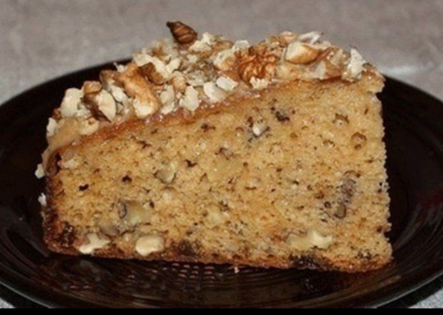 Очень быстро, легко и вкусно!!! Ингредиенты: -1 стакан муки (220 мл) -50 г сахара -100 мл молока -4 яйца -1 банка вареной сгущенки -2 ч.л. разрыхлителя -1 стакан очищенных грецких орехов -50 г изюма Приготовление: 2/3 банки сгущенки перекладываем в миску. Туда же отправляем яйца и сахар, взбиваем миксером. Всыпаем просеянную с разрыхлителем муку, замешиваем однородное тесто. Орехи крупно рубим. Половину сыплем в тесто, добавляем изюм, перемешиваем. Выливаем тесто в смазанную и проложенную пергаментом форму, печем в разогретой до 180 градусов духовке до сухой спички (примерно 40 минут). Пока пирог печется, оставшуюся сгущенку и молоко помещаем в ковшик, нагреваем и доводим до однородности. Готовый пирог, не остужая и не вынимая из формы, поливаем полученным кремом и посыпаем оставленными орехами. Даем настояться пару часов при комнатной температуре и кушаем!!! Приятного аппетита !!!😍😍😍