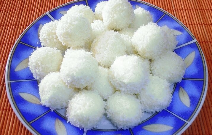 Пирожное Raffaello. Я думаю, что никто бы сейчас не отказался от такого маленького, но в тоже время очень вкусного десерта. Всем привет. Вы на канале рецепты на "ура", и мы сегодня будем делать самый простой в приготовлении рецепт пирожного raffaello. Нам понадобится: ♦ Кукурузные палочки 1 упаковка ♦ Сгущенное молоко 1 банка ♦ Орехи ♦ Коксовая стружка Берем кукурузные палочки, они тоже сами по себе очень вкусные, но нам их нужно пропустить через мясорубку. Да, да, именно через мясорубку. Я пробовал пропустить через блендер, но пушистой крошки не получается, а нам нужна именно пушистая крошка. Затем мы берем ровно половину крошки, отправляем в посудину в которой будем замешивать, добавляем в эту крошку сгущенное молоко (простое сгущенное молоко, которое продается в любом магазине), может быть как из банки, так и из пакета и начинаем замешивать тесто. Нам нужно замешивать тесто пока не останется ни грамма крошки, но смотрите, со сгущенкой не переборщите, пото