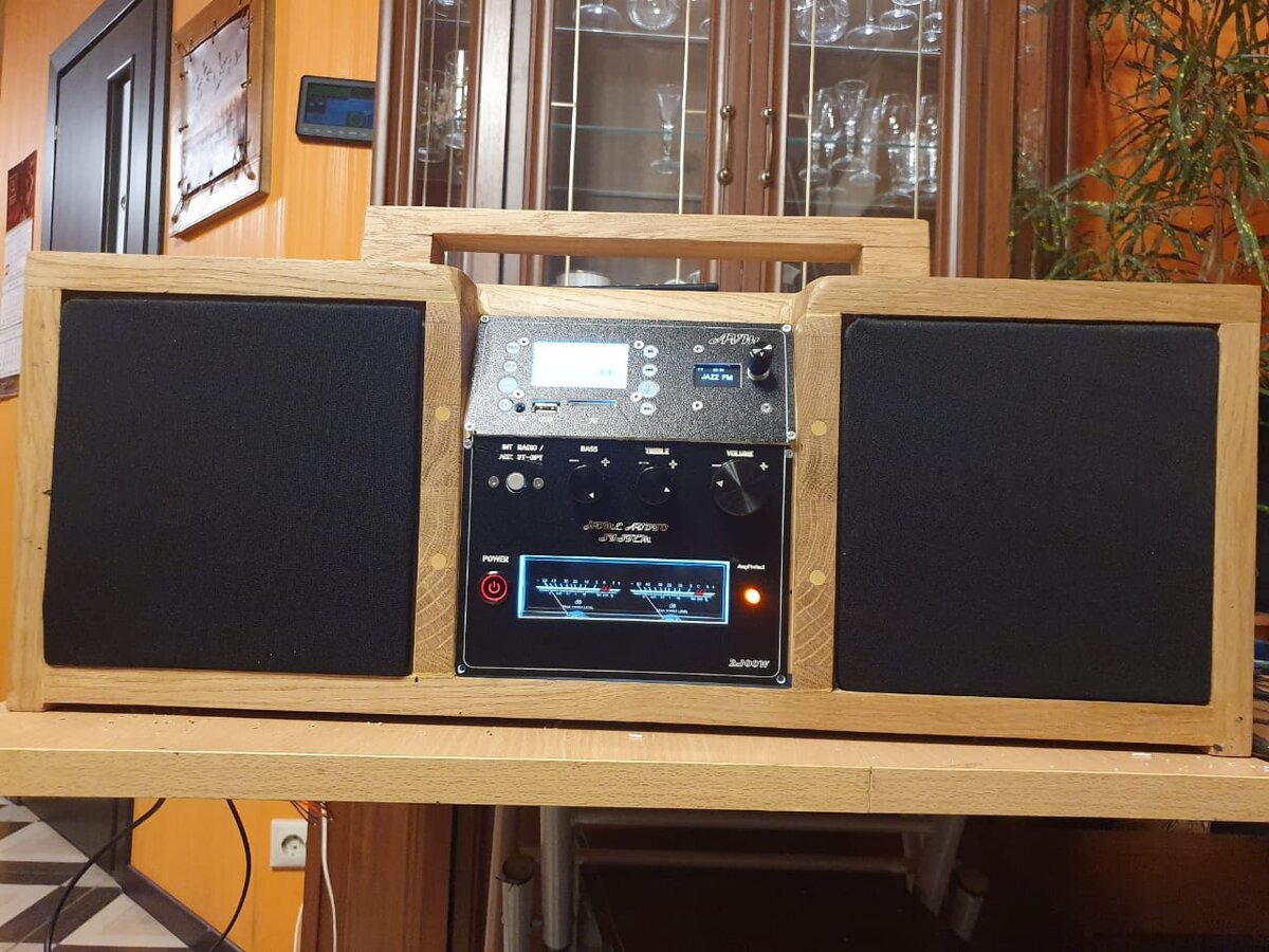Такая система пригодится и дома, и на даче, можно слушать музыку с мобильного телефона или флешки, можно слушать радио, также оснащена модулем интернет радио WOLNA, имеет оптический и коаксиальный входы, то есть можно использовать как саундбар для телевизора, и тем не менее, оснащённая приличным аналоговым темброблоком, тонкомпенсацией, приличным транзисторным УНЧ с двухполярным питанием +/-35В приличной мощности, никогда не встанет в ряд ни с одной bluetooth колонкой, даже весьма большой, которые можно купить сегодня в магазине, да и функционал немного расширен.