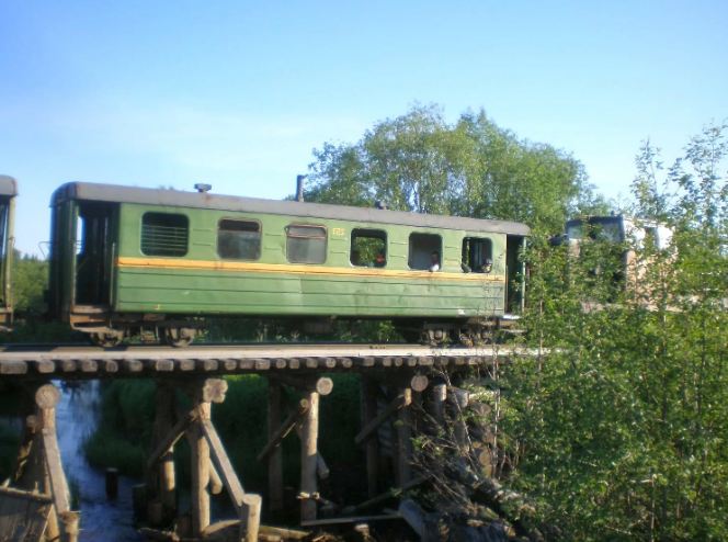 Как и по РЖД так и по УЖД люди ездят в вагонах. Только на РЖД пассажиры могут заказать чай или постельное бельё или даже сходить в вагон ресторан. В вагонах УЖД всё совершенно иначе. Во первых эти вагоны не предназначены для длительных поездок и по этому там отсутствует какое либо обслуживание и во всяком случая лично я никогда не видел чтоб на узкоколейке продавали билеты. Итак, в одном вагоне есть сорок мест для пассажиров. Эти места, обычные деревянные лавки и если честно не очень-то удобные. Ездить по УЖД надо привыкнуть. С непривычки страшновато, потому что при движении вагон раскачивается, того и гляди упадёт на бок. И кстати такие падения не редкость, вот только что успокаевает, так это то , что такие аварии без жертв. Во первых скорость таких поездов не высокая, обычно не превышает 20-25 км/ч, а во вторых по обочине железной дороги растут довольно таки пышные кусты и при падении вагон просто наваливается на них. Зимой такие вагоны отапливаются при помощи железной печки "буржуйк