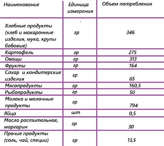 Не думал, что эта тема так заинтересует читателей. Статья о советском дефиците и российском изобилии задумывалась как общий ответ некоторые комментарии, однако адепты "Тотально нищего СССР" так рьяно бросились защищать свои Биг-Маки и "Кока-колу"( похоже, что в уста кладут, то и из уст несут), что решил вернуться к этой теме. Для начала, как обычно, факты, а аргументы потом: Такую таблицу вы нигде не встретите, однако это суточная норма потребления здорового, работоспособного жителя Российской Федерации, которая закреплена ЗАКОНОДАТЕЛЬНО, для расчета продуктовой корзины и, следовательно, прожиточного минимума, и снова, следовательно, минимального размера оплаты труда. Напомню, что прожиточный минимум теперь рассчитывается так - продуктовая корзина, плюс 50% от ее стоимости на услуги, транспорт, мыльно-рыльные принадлежности и. т . д. Повторюсь, это норма для трудоспособного населения, для детей и пенсионеров она снижена, по некоторым пунктам в 1,5 раза. Не люблю быть многословным, по