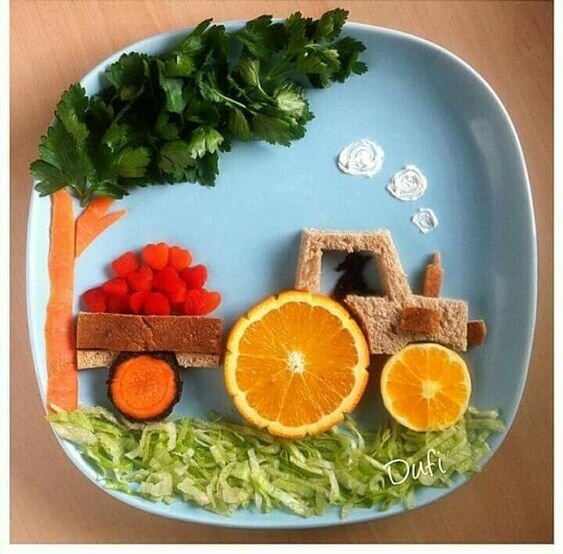 Немного усилий и фантазии, и завтраки ваших детей превратятся в произведения искусства. Важна идея В этом завтраке нет ни одного продукта, которого бы не нашлось в любом холодильнике. Немного капусты или листьев салата, апельсин, кусочек хлеба, морковка, петрушка и любые ягоды или кусочки фруктов. На самом деле важна визуальная идея, а компоненты съестного рисунка вы сможете подобрать согласно своему наличию холодильника. Герои - залог восторга Если ваш малыш любит горошек или кукурузу, такой завтрак может стать настоящим восторгом - любимый герой в дополнение к любимой еде, что может быть лучше! У вас малоежка? Даже самые отъявленные малоежки кушают макароны и спагетти, а если их украсить такими фигурками, блюдо будет съедено с удовольствием. Можно дополнить "гору" потертым сыром или "камнями" из орешков. Сложно только на первый взгляд Такое блюдо только кажется сложным, но рассмотрите варианты - лицо из половинки вареной картошки, а тело из коричневого риса. Это займет у вас совсем