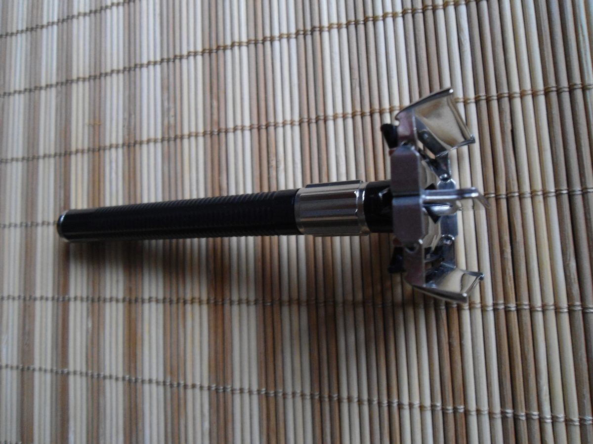Касаемо самого станка. Ручка удлиненная нежели у обычных, но это не мешает, это своего рода дает определенную элегантность внешнему виду бритвы. Черный цвет, классика, смотрится весьма приятно. Ручка ребристая сделана для того, чтобы бритва не скользила в руке. Метал и пластик сделаны качественно, смотрится приятно. Механизм стандартный - тюльпан, закрывается и прижимает лезвие хорошо. При бритье весьма удобно лежит в руке, с любым лезвием бреет чисто. При тесте бритвы, использовались лезвия разных стран, таких как: Япония, Корея, Турция, Германия, Египет, Европа, Россия.