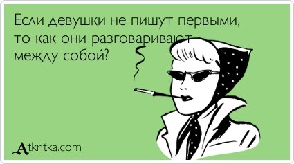 Или всё-таки пишут?.. Скажу сразу - я никогда не надеялся на то, что девушки станут писать сразу, как только я заведу свою анкету на сайте знакомств. Я думал, что это будет происходит реже, чем пишут парни девушкам, ну скажем, раза в 3-5. Что же на деле? Девушки почти никогда не пишут сами! Неважно даже, насколько вы соответствуете образу мужчины-красавчика. Девушки будут вести себя с вами очень пассивно. Почему они не пишут сами? Им что, неинтересно познакомиться?! Всё дело в том, что девушки по своей природе - самовлюблённые существа. Если у вас есть опыт пребывания на знакомствах, то вы должно быть замечали, что действительно красивые внешне девушки никогда сами не пишут. Они таким своим поведением как бы набивают себе цену. Понимаете, тут нет никакой магии - это чисто психология. Кто первый пишет, тот и должен проявлять инициативу в общении. Но зачем им это делать? Они лучше подождут, когда сужены-ряженый сам приплывёт к ним и осчастливит. Но что делать? Стоит ли унижаться и писат