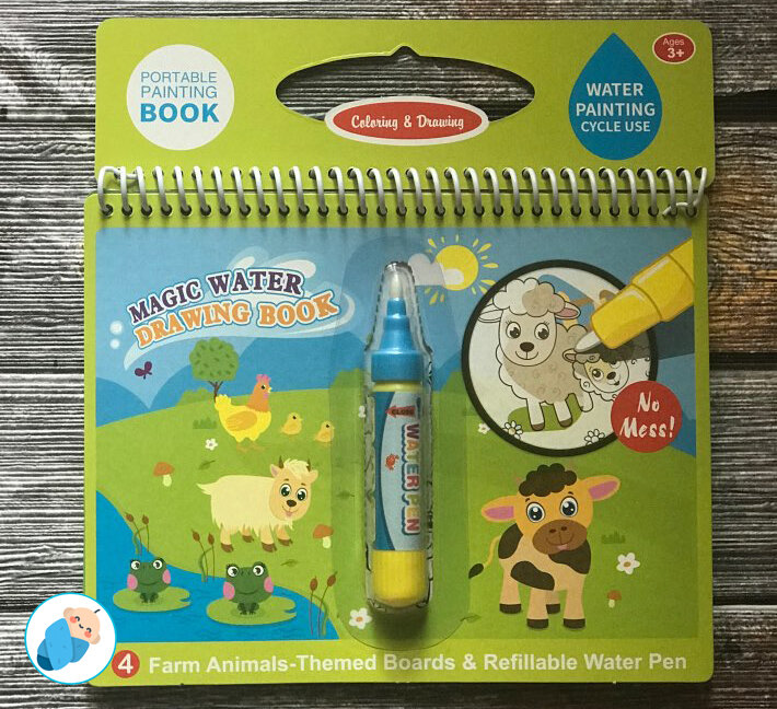 Приветствую Вас на канале Малыш_Alik! На сегодняшний день для детей имеется масса различных развлекательных, развивающих товаров. Один другого интереснее, что называется. И выбирая для своего малыша игрушки, хочется чтобы малыш не просто поигрался и забыл ее, а получил при этом пользу. И сегодня я хочу Вам рассказать про водную раскраску. Как это работает... В комплекте с самой раскраской, которая состоит из нескольких пластиковых карточек с изображениями, идет фломастер, в который наливается вода. Можно также использовать обычную кисточку. Изначально раскраска, как и самая обычная раскраска, имеет белый фон и рисунки черного цвета. А в том месте где провели по картинке фломастером с водой, появляется красочное изображение, а на обратной стороне есть подсказки на английском языке, что скрывается за белым фоном. Так что параллельно можно изучить некоторые слова на английском, что актуально для малышей постарше. Большой плюс в том я считаю, что цвет как бы уже заложен в картинку. То