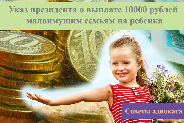 Статья на нашем сайте: Указ президента о выплате 10000 рублей малоимущим семьям на ребенка