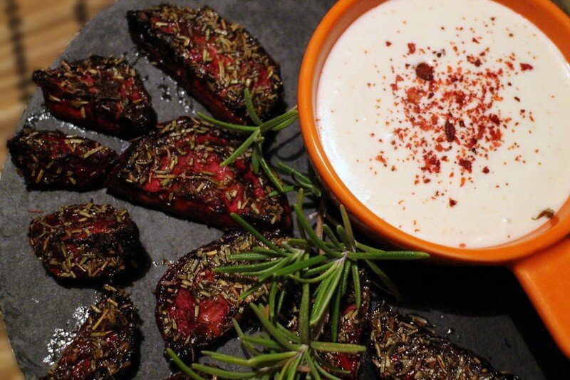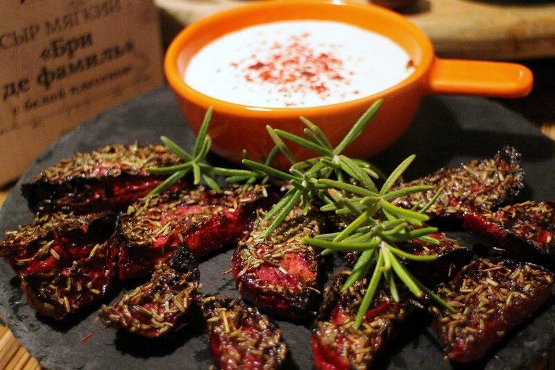 5. Подать готовую свеклу на тарелку вместе с соусом. Бри можно легко заменить на камамб