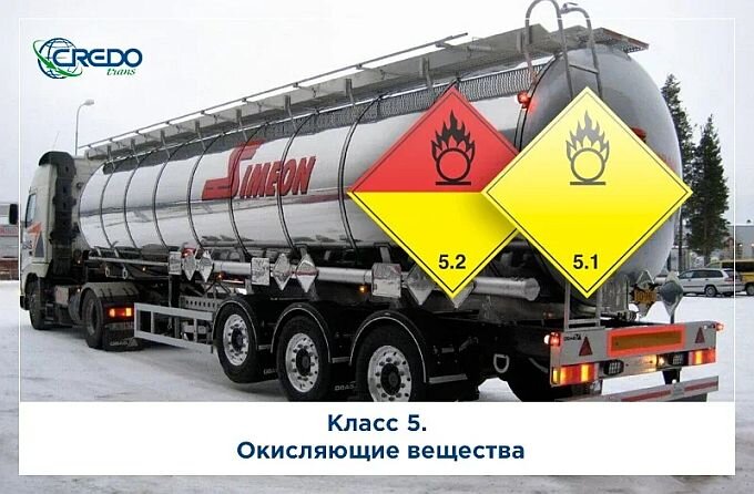 5-й класс опасности - Окисляющие вещества и органические пероксиды, которые способны легко выделять кислород, поддерживать горение, а также могут, в соответствующих условиях или в смеси с другими веществами, вызвать самовоспламенение и взрыв. Подклассы окисляющихся веществ: Опасные грузы # Класс 1. Взрывчатые вещества. Опасные грузы # Класс 2. Газы сжатые. Опасные грузы # Класс 3. Легковоспламеняющиеся жидкости (ЛВЖ) Опасные грузы # Класс 4. Легковоспламеняющиеся вещества и материалы. Опасные грузы # Класс 6. Ядовитые и инфекционные вещества. Опасные грузы # Класс 7. Радиоактивные материалы (РМ). Опасные грузы # Класс 8. Едкие и коррозионные вещества (ЕК). Опасные грузы # Класс 9. Прочие опасные вещества и изделия. Хотите знать больше о грузоперевозках? Подписывайтесь на канал транспортно-логистической компании "Кредо Транс"