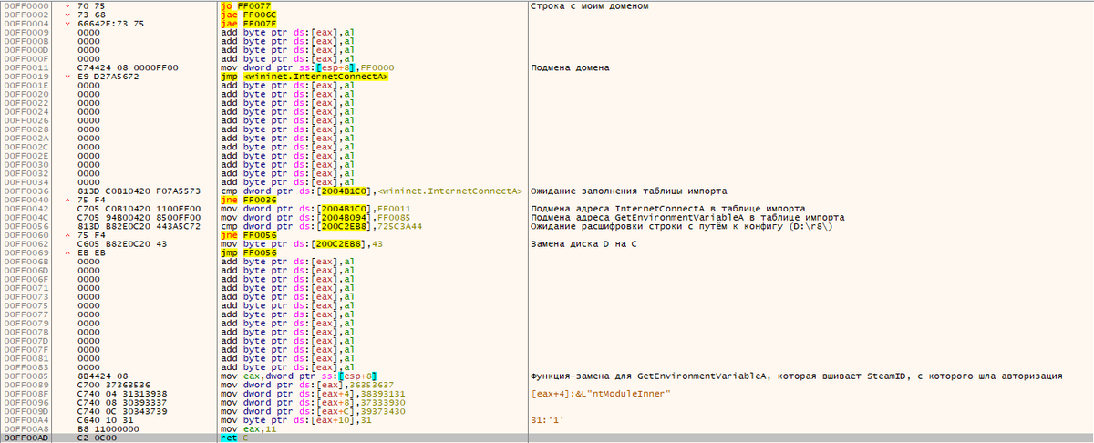 Лоадер у нас упакован VMProtect, и имеет какую то неебическую антиотладку (не знаю от VMP или нет), но справится с ней смогла лишь связка Windows 7 + TitanHide, хотя остальные софты под VMP я спокойно запускаю в отладчике в связке Windows 10 + TitanHide, но с этой почему то мой любимый драйвер сделал сосо. Но заострять внимания на лоадере я не буду, так как я для кряка вообще не занимался его изучением, самое важное он инжектит в стим, так что я аттачнулся к нему и начал копать :) Модуль для инжекта в стим Я не буду в этой статье описывать как ПОЛНОСТЬЮ устроена эта защита, в силу своей нехватки времени (и лени) - я всегда нахожу только те части, которые мне нужны, и никогда не трачу время на изучение защиты полностью. Итак: