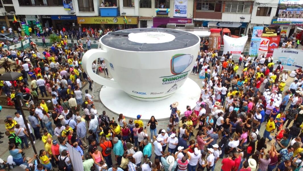 15 июня в Чинчине Калдас прошло мега-событие, на котором мэрия Чинчины побила не один, а два мировых рекорда. Несколько месяцев назад начался процесс создания кофейной чашки, конструкция, которая была одобрена Книгой рекордов Гиннеса и стала сосудом, который вмещал бы 22 739 литров кофе. Чашка была расположена в центре парка Боливар на главной площади муниципалитета. В субботу организаторы прибыли в 6 часов утра, чтобы начать запись того, как кофе доставлялся от производственной компании к месту нахождения чашки. Было необходимо, чтобы конструкция чашки могла вмещать более 18 012 литров (измерение предыдущего рекорда, достигнутого Маркой Паис Гондурас в 2019 году), в дополнение к наличию всех санитарных условий, которые делали оптимальным хранение кофе. Любопытно, что согласно регламенту, напиток нужно было подавать горячим, поскольку, если его подавать холодным, он попадет в рекордную категорию самого холодного кофе в мире. После подготовки официальный судья Наталья Рамирес пров