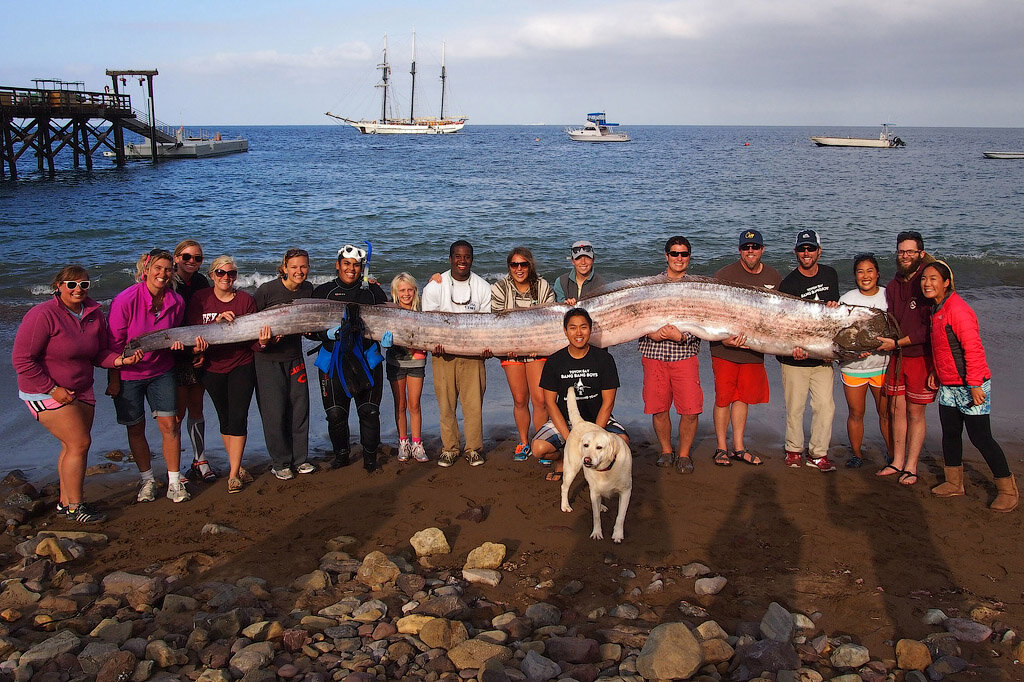 Как ее только не называют: сельдяной король, ремнетел, рыба-ремень (Regalecus glesne). Принадлежит семейству ремнетеловых рыб, отряда опахообразных.