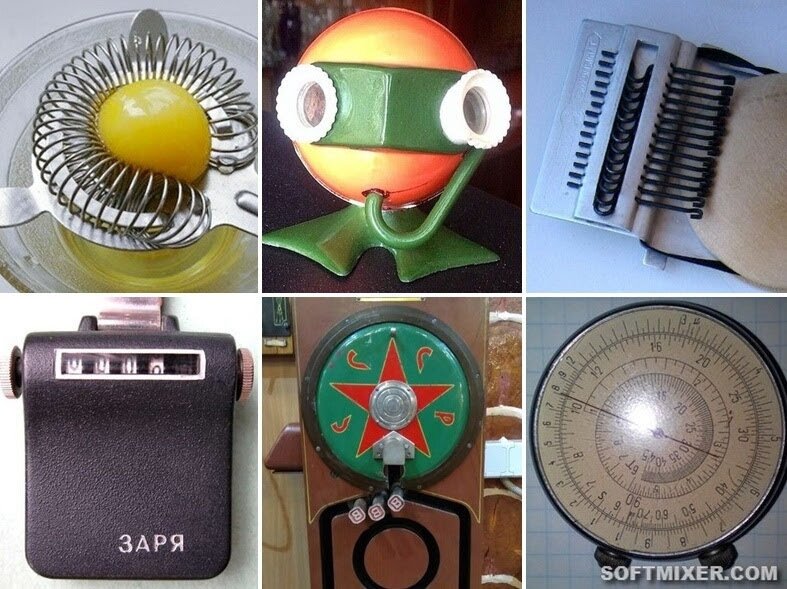 У многих из нас наверняка остались какие-то вещи времен СССР. Для кого-то это память о прошедшем, кому-то просто жалко их выбрасывать. Некоторые советские изделия настолько долговечны и практичны, что нет смысла заменять их современными аналогами. Однако есть и такие предметы, назначение которых знают лишь единицы… Прибор для отделения белка от желтка. 2. Это похоже на обычный кусочек грифеля. Но не все так просто Грелка для рук. Тления угольной палочки хватало на 8-9 часов. 3. Мини-пистолет? Инструмент лора? Стилизированная печать? Пистолет для лепки пельменей. 4. Какой-то счетчик. Но чего именно? Шагомер. 5. Может, это особый молоток для отбивания мяса? Соковыжималка. 6. Это вешалка или все же хитроумная щетка? Вешалка для одежды с щетками для ее чистки. 7. Похоже на обычный уличный умывальник на дачу Медицинская клизма. 8. Компас, который приведет к сокровищам! Или все-таки нет? Круговая логарифмическая линейка. 9. 100 %, что это орудие пыток Плойка для волос. 10. Необычный фотоап