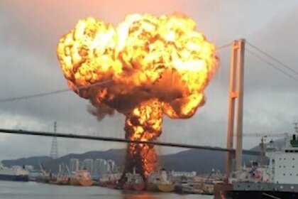 На грузовом судне Stolt Groenland в Южной Корее, перевозившем нефтепродукты, произошел взрыв. Об этом сообщает местное новостное агентство Yonhap. Взрыв прогремел в 4 утра по московскому времени в порту города Ульсан, после чего на судне, которое шло под флагом Каймановых островов, начался сильный пожар. Пламя начало быстро распространяться и перешло на рядом стоящее сингапурское судно Bow Dalian, где находился 21 человек. Отмечается, что на борту Stolt Groenland было 25 членов экипажа, среди которых оказались граждане России и Филиппин. Как стало известно позже, всех сотрудников обоих кораблей успешно эвакуировали. Девять из них получили травмы, и им понадобилась медицинская помощь. Ранее в сентябре у причала норвежского города Тромсё опрокинулся и частично затонул российский траулер «Бухта Наездник» после того, как на нем в течение 22 часов продолжался пожар. На судне находилось около 200 тысяч литров дизельного топлива и цистерна с аммиаком