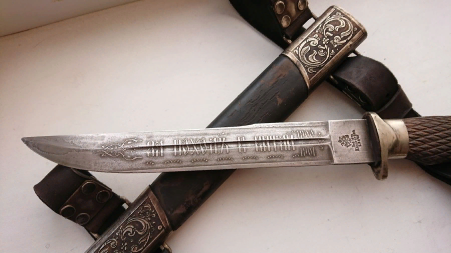 Предлагаю рассмотреть два исторических коллекционных экземпляра. Как выглядел казачий пластунский нож в русской императорской армии Российской Империи 1900 - 1917 года. В нашей версии пластунский нож является наградным казачьим ножом "За поход в Китай". При чем не просто каким-нибудь сувенирным, а клинком боевым. Клинок изготовлен под заказ заводом (фабрикой) Кондратов с Вачи. Длина клинка без ножен составляет 38,5 см., с ножнами - подвесом 39,5 см. Казаки состоя в русской императорской армии Российской Империи, с подобными клинками осуществляли разведывательную или диверсионную операцию на вражеской территории. Возможно, кто-то скажет, что пластунский нож делали из сломанной в бою шашки. Не беспочвенно будет утверждение, действительно в этом правда есть. К примеру, на клейме бывшей шашки можно прочитать дату 1914 - 1915 года, изготовленной в одной из фабрик Российской Империи. Пластун