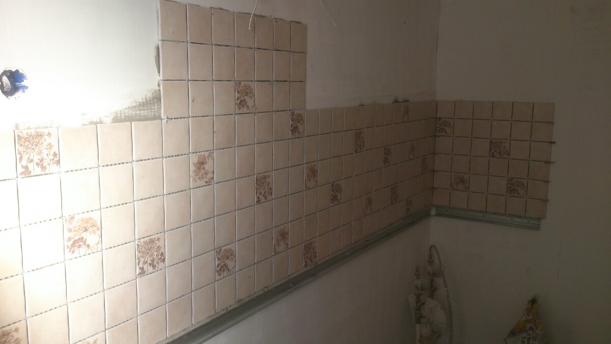 В этой статье я расскажу о том как я выкладывал фартук для кухни из керамической плитки 10х10 сантиметров. Подошёл заказ на ремонт кухни. Гарнитур уже заказали и под него нужно наклеить новые обои, демонтировать старый кафель с пола и положить новый линолиум, натяжной потолок, ну и так же прицепом электрика и вентиляция. Но речь пойдёт о фартуке для гарнитура. Поначалу хозяйка квартиры обдумывала варианты: фотопечать на стекле, ламинированый ДСП, кафель. Но кафель стандартный она не хотела. И вот она позвонила мне и спросила: нашла плитку которая нравится, но размер у неё 10х10. Ничего страшного? Я ответил что пусть берёт, хотя раньше я такой мелкий не ложил. Да и кафель кладу редко. Но мне было интересно заняться этой работой. Стена, на которой предполагался фартук, являла собой железобетонную плиту. И небольшой участок с торца кухни 600х600, там заливной армированый гипсолит. Обе стены имеют небольшие уклоны от вертикали. Класть на слой такой мелкий кафель не могло быть и р
