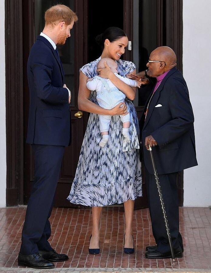 Принц Гарри и Меган Маркл впервые показали подросшего сына Арчи, и фанаты королевской семьи тут же принялись сравнивать его с отцом. На этой неделе герцог и герцогиня Сассекские впервые показали своего сына во время турне по Южной Африке. Малыша взяли с собой во время визита к архиепископу Десмонду Туту. Поклонники королевской семьи отметили сходство четырёхмесячного Арчи с принцем Гарри: По их мнению, черты лица у сына герцога Сассекского точно такие же, какие были у него самого в таком же возрасте: Правда, мы так и не смогли разглядеть рыжие волосы у Арчи, о которых говорили друзья Меган Меган Маркл. На Арчи был полосатый комбинезон H&M всего за 15 фунтов стерлингов. Некоторые СМИ считают, что выбор этого комбинезона не был случайным — герцогиня Сассекская решила следовать королевской традиции и надеть на сына одежду в полоску. Если взглянуть на фотографии принца Гарри в детстве, а также на снимки сыновей принца Уильяма, то можно заметить, что на них часто надеты полосатые вещи. Кста