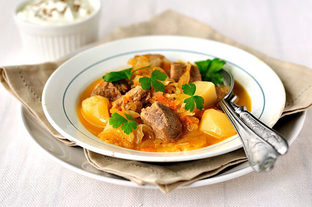 Когда время близится к полуденной трапезе, лучшее что можно приготовить быстро и вкусно на обед для мужчин – это потушить мясо с овощами и приготовить ароматное блюдо для всей семьи. Овощное рагу с мясом – обыденная домашняя еда с различными компонентами, который может выглядеть как наваристый густой суп, овощная подливка или же, как жаркое. Ингредиенты Состав овощей и их пропорции, включая мясо, могут быть совершенно разными. Чем больше составляющих, тем вкуснее получится блюдо. Никаких четких правил не существует, все очевидно и просто. Закладываются все продукты по очередности, сначала обжариваются, а после тушатся до желаемой консистенции. Способ приготовления Нарежьте свиную шейку умеренно крупно, репчатый лук тонкой соломкой, картофель поделите на большие куски и мелко порубите чеснок. Разогрейте в сковороде масло. Обжарьте на сильном огне мясо, до образования легкой и румяной корочки. Отдельно обжарьте нарезанный лук и рубленый чеснок, пока лук не пустит сок и станет чуть прозра