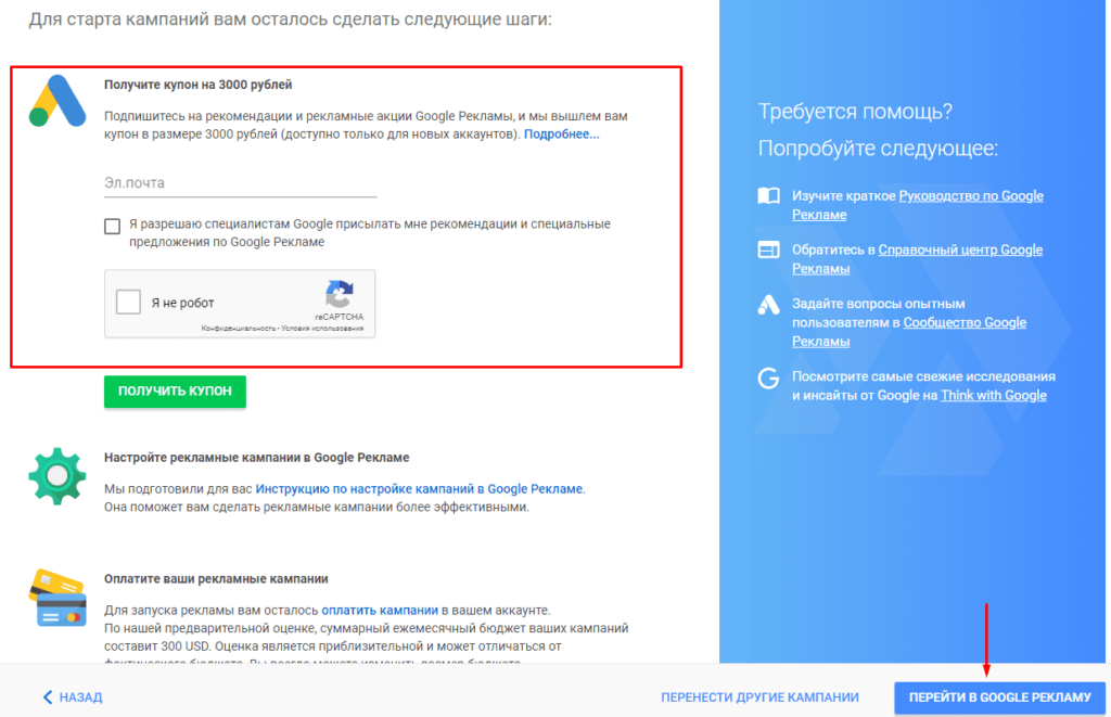 Промокод Google Adwords (Реклама) позволяет возместить часть затрат при старте рекламной кампании. Через Google Teleport (Способ №1) Первый и самый легкий способ получения промокода — это перенос рекламных кампаний и Яндекс.Директ в Google Adwords (Ads) при помощи Телепорта. По окончанию экспорта будет предложен промокод на 3000 рублей. Для того, чтобы быстро получить его скачайте файл ниже, после чего используем его для импорта. Файл для быстрого импорта в Google AdwordsСкачать В нем содержится лишь одно объявление, которое в дальнейшем Вы сможете удалить данную кампанию, использовав полученный код. Через Партнеров Google (Способ №2) Используя продукты партнеров Google можно также получить промокод для Google Рекламы. Так, среди партнеров можно выделить: Как использовать промокод в Google Рекламе (Adwords) Для этого кликаем на «Инструменты и настройки»-«Платежные настройки». Переходим в нижнюю вкладку экрана «Промокоды», где нажимаем на «Управление промокодами». Вводим полученный ун
