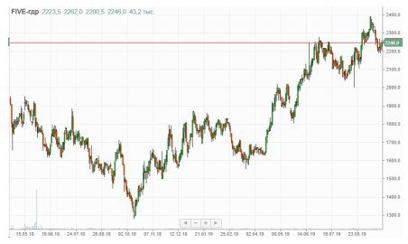 🇷🇺Five-гдр (FIVE) ПОКУПАТЬ 👍 Инвестиционный горизонт 1-3 мес. Цена входа 2242 руб. Цель 2450 руб. Потенциальная доходность на сделку 9.27% Объём входа 12,18% Стоп приказ 2150 руб. Бумага торгуется в восходящем боковом тренде после пробоя локального сопротивления на небольшом откате. Мы рекомендуем открывать длинные позиции на текущем уровне. При покупке на 12,18% от портфеля и выставлением стоп заявки на 2150 р, риск на портфель составит 0,5%. Соотношение прибыль/риск составляет 2.26. Целевой уровень фиксации прибыли – 2450р. X5 Retail Group намерена трансформировать сеть гипермаркетов "Карусель", сообщил ритейлер. За 6 месяцев 2019 года она принесла X5 5,1% общей выручки и 2,9% консолидированной EBITDA. В настоящий момент под брендом "Карусель" работает 91 магазин, 49 из которых открыты на собственных площадях, 42 – на арендованных. Компания сообщает, что решение основано на результатах пилотных проектов больших супермаркетов "Перекрёсток", открытых на базе гипермаркетов "Карусе