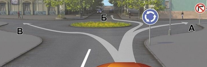 По траектрии А мы тоже можем продолжить движение, если бы не было знака "Поворот запрещен". А как мы знаем, повернув, мы совершим ошибк. Многие ученики почему то не обращают внимание на знак, тем самым делают ошибку. Эта невнимаельность и приносит дополнительные вопросы на экзамене. Но обратите внимание, что в билетах попадается такой же вопрос, но там знака уже нет. В этом случае правильный ответ будет по траектории А и Б.