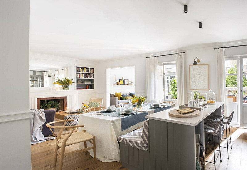 В этой уютной испанской квартире кухня является настоящим сердцем дома. Она занимает центральное место в макете, очень просторная (есть несколько областей - для приготовления пищи, столовой, хранения), и все безумно красивая. Никаких сомнений в том, что именно на кухне владельцы проводят большую часть времени, болтая за прекрасным обедом! Природная древесина в дизайне и много естественного света только способствуют уютной атмосфере. Красота!