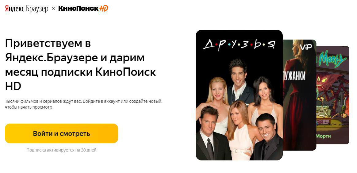 Бесплатно получаем подписку на 30 дней в КиноПоиск HD