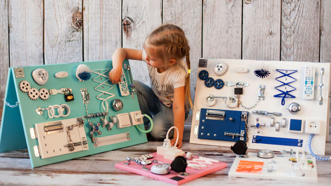 Что такое бизиборд? Бизиборд – это увлекательная игрушка-тренажёр для детей младшего возраста, которая представляет собой доску с закреплёнными на ней выключателями, колёсиками, шестерёнками, болтами, дверными замками и любыми другими мелочами. Кто придумал? Идея бизиборда принадлежит итальянскому медику и педагогу Марии Монтессори, которая считала, что главная задача родителя – подвигнуть ребёнка к саморазвитию. Доска позволит малышу самостоятельно понять, как работает тот или иной механизм, например, безопасно поковыряться в розетке, покрутить гайки и поиграться с замками и засовами. Такая забава хорошо развивает мелкую моторику, сообразительность, логику и усидчивость. Как сделать? Можно купить готовый бизиборд, но гораздо лучше сделать его самостоятельно, подобрав те предметы, которые заинтересуют именно вашего ребёнка. Для этого вам понадобятся Для начала возьмите деревянную доску или лист фанеры и тщательно отшлифуйте. Покройте лаком или краской на водной основе. Кстати, осн