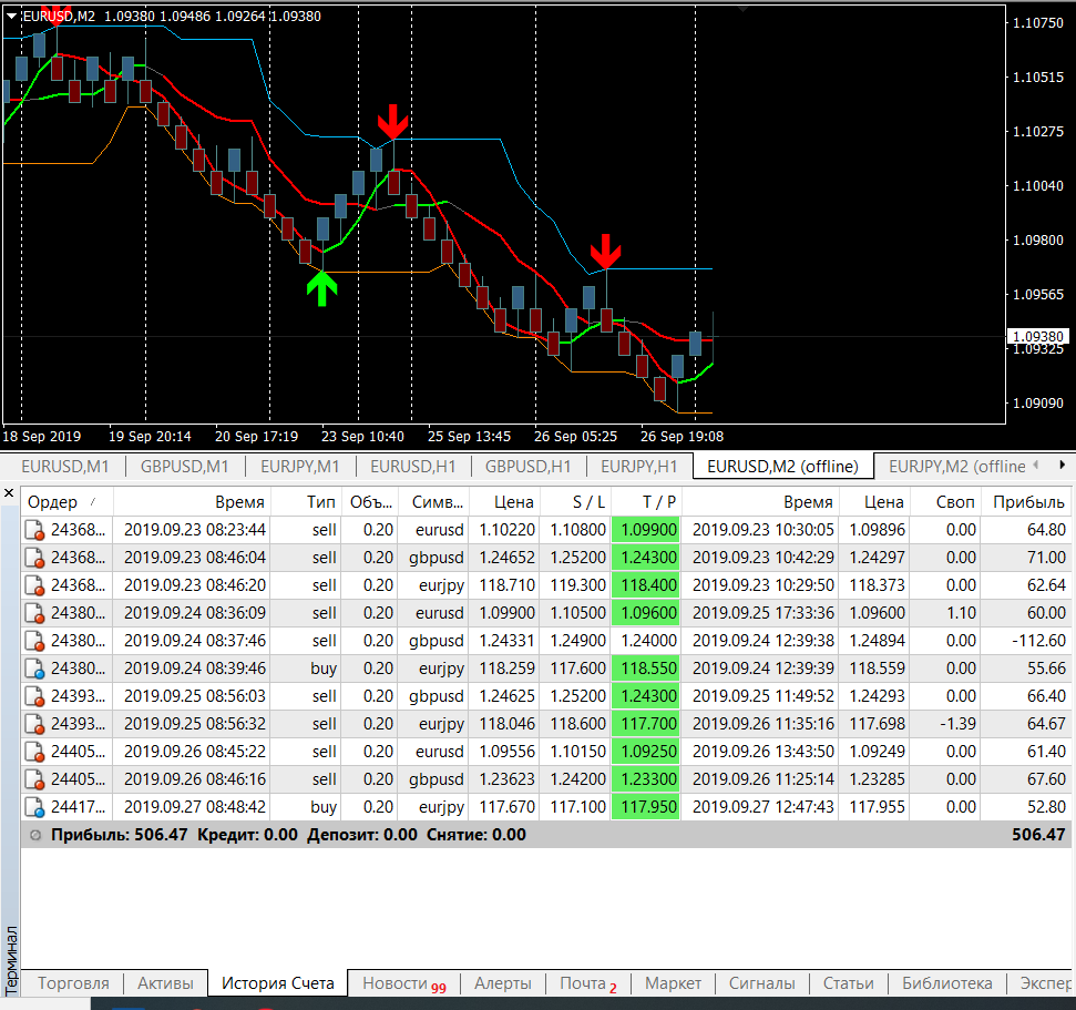 📊Статистика по сигналам за период 23.09.2019 - 27.09.2019 Прибыль составила +506$ (+300pips)