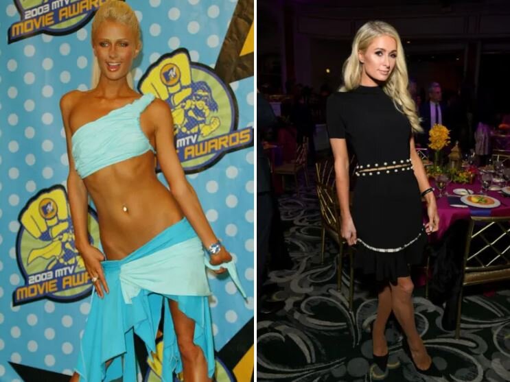 1.Paris Hilton Тогда: вся в автозагаре, брови головастика и обрывки материала, которые так или иначе составили топ и юбку. Сейчас: сложные деловые линии, похоже, она пахнет успехом и деньгами. 2. Nicole Richie Тогда: обтягивающий топ-туника в ярчайшем оттенке неоново-розового цвета и шарф на голове.