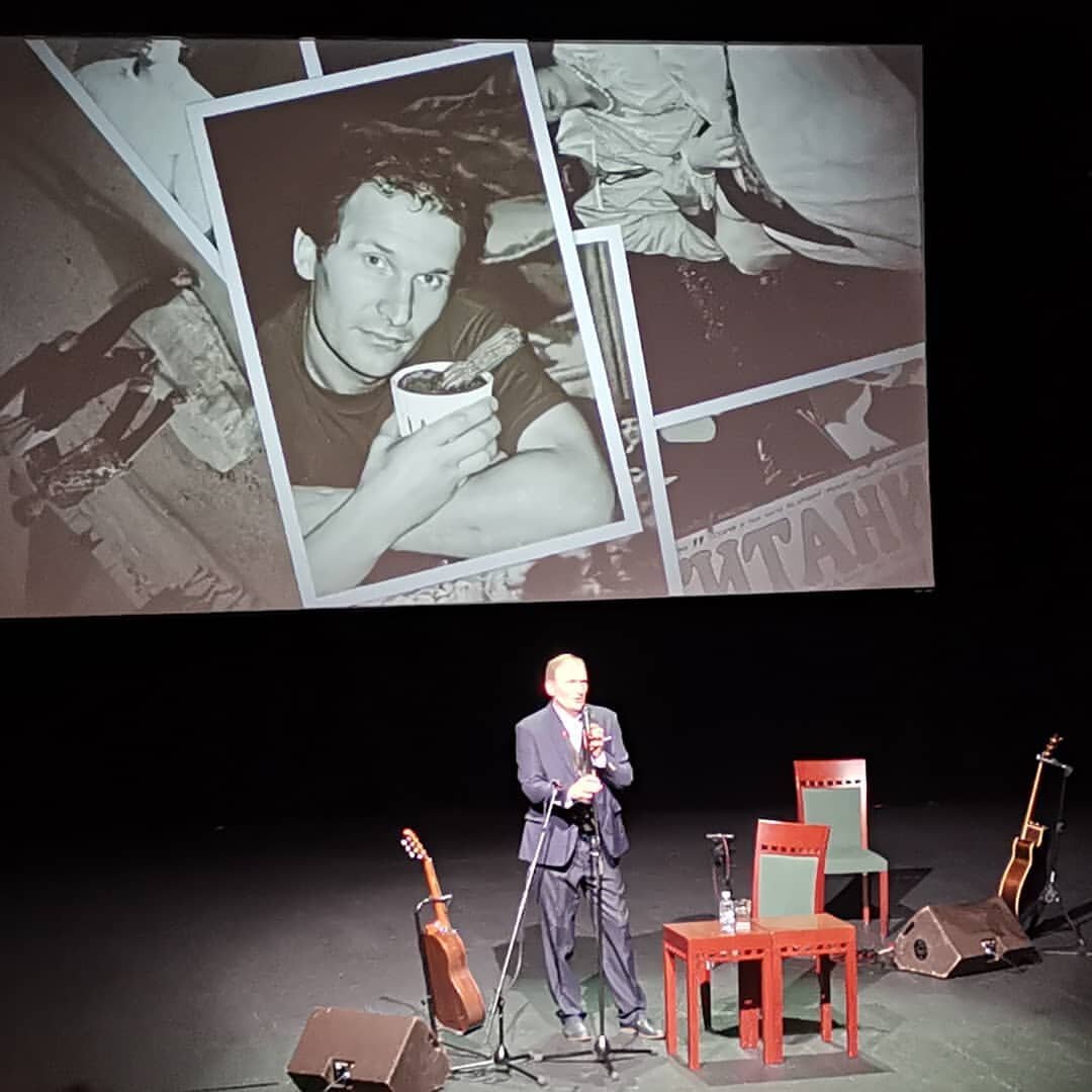 На протяжении без малого двух часов Фёдор Викторович рассказывал. Эмоционально, захватывающе и вполне доверительно. Щедро разбавлял свой монолог лирическими и смешными историями. А также спел и сыграл несколько песен в две гитары со своим другом Александром.