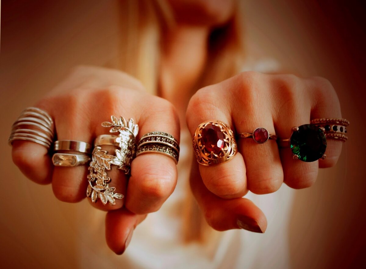 Перстни, кольца из золота, серебра, украшенные камнями или без них, были, остаются, атрибутами власти, победы. Кольцами пользуются целители, энерготерапевты, чтобы «настраивать» организм. Драгоценные камни, заключенные в оправу, могут даровать удачу, финансовую независимость. Или принести беду, притягивать неприятности. Правильно носить кольцо могут немногие. Женщины, как правило, выбирают палец для украшения интуитивно. Мужчины носят кольца на мизинце или безымянном пальце. Но неправильно надетый перстень может отпугнуть удачу. А правильно — притянуть. Защищать или помогать Действие кольца зависит от того, на какую руку его надели. Правая рука — черпает энергию, берет от мира удачу, успех, притягивает деньги. Левая — защищает от бед и проблем, на ней носят обереги, амулеты. Тоже касается металлов. Золото — металл «янь», сильный, активный. Серебро — «инь», бережет, сохраняет. Защитные кольца носят на левой руке, делают из серебра. Притягивающие удачу — на правой руке, делают из золота.