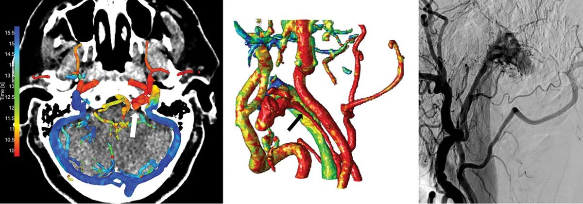 4D-КТ ангиография все чаще используется в клинической практике для оценки различных сосудисто-нервных расстройств. Оптимизированная обработка 4D-КТА имеет решающее значение для диагностической визуализации из-за большого количества генерируемых данных. Метод картирования цвета для 4D-КТА представлен для улучшения визуализации гемодинамики сосудистой сети головного мозга. Этот метод был применен Midas Meijs и соавторами для выявления черепных артериовенозных шунтов (АВШ). Результаты данного исследования были опубликованы в American Journal of Neuroradiology в августовском выпуске за 2019 год.